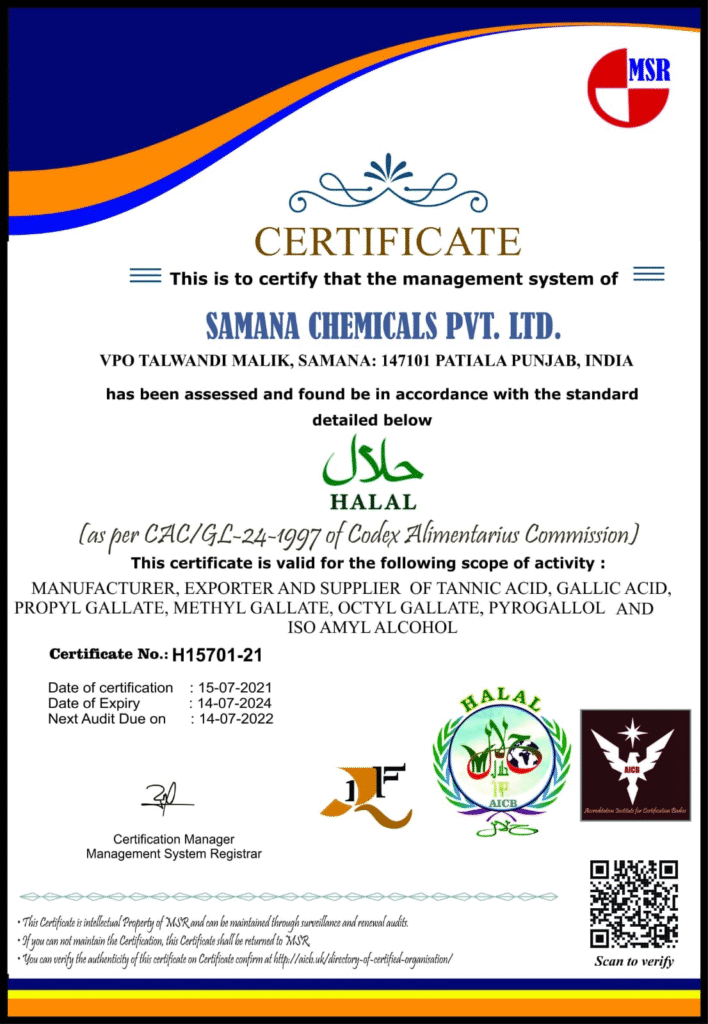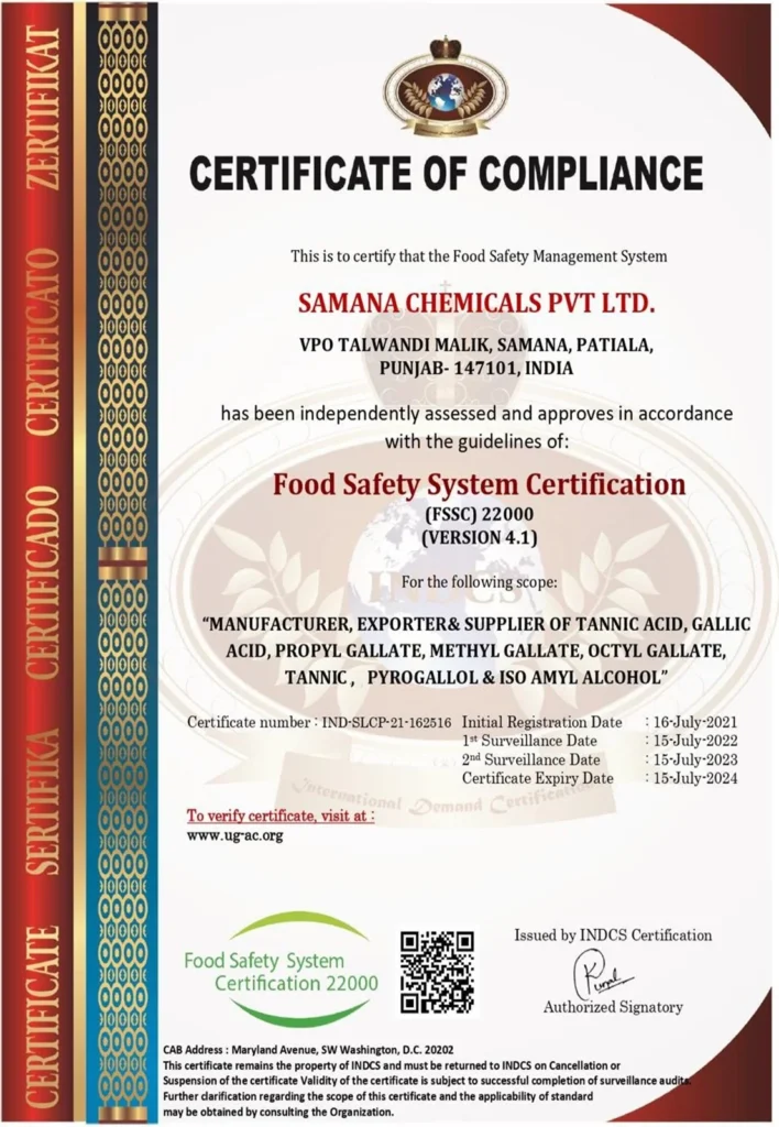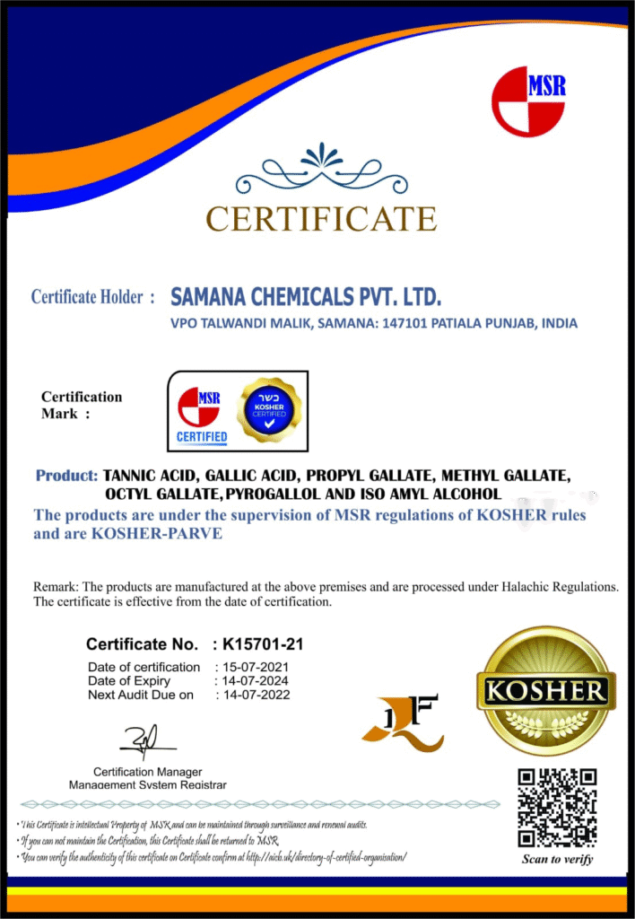 Our product range includes high-purity Tannic Acid, Gallic Acid, Propyl Gallate, and Pyrogallic Acid, tailored for pharmaceutical, food, and industrial applications. Each product is manufactured under strict quality standards to ensure consistency, safety, and global compliance.